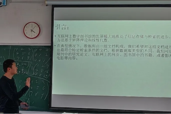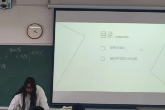 张轩同学为大家介绍了层次分析法,不仅应用了矩阵乘法,而且使用雨课堂进行了互动,充分利用了课程所学和现代教育技术。